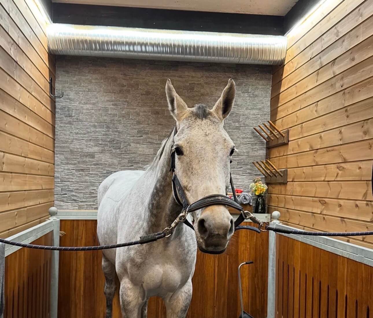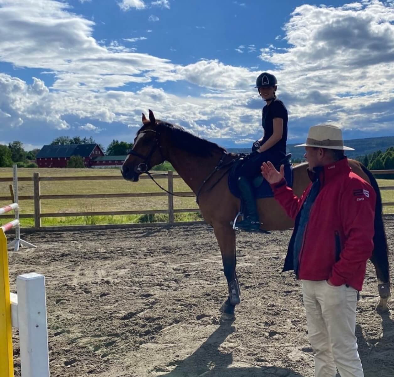 Stall del 1 med 6 store bokser med vindu som kan åpnes i hver boks og egen utstyrsbod.Hestene strotrives i store bokser og fint med vindu som man kan stikke hodet ut av.Ryddig forrom.Detaljer i stallen. Her er det ene pussespiltet som befinner seg i stall del 2.Vaskespilt som befinner seg i stall del 1. Kaldt og varmt vann.Stall del 2. Alle gulvflater er gummibelagt.Uteridebanen med lys og vanningsanlegg. Vi har lagt vekt på godt grunnarbeid og det var kun få perioder i vinter vi ikke kunne bruke banen.Stallen har en flott beliggenhet med sol hele dagen og fra enden av uteridebanen kan man se Glomma.Hingsten – Ekras Quios – Maren Land som rytter.Trening med Hauke Luther.Dyktig sprangtrener – Hauke Luther.